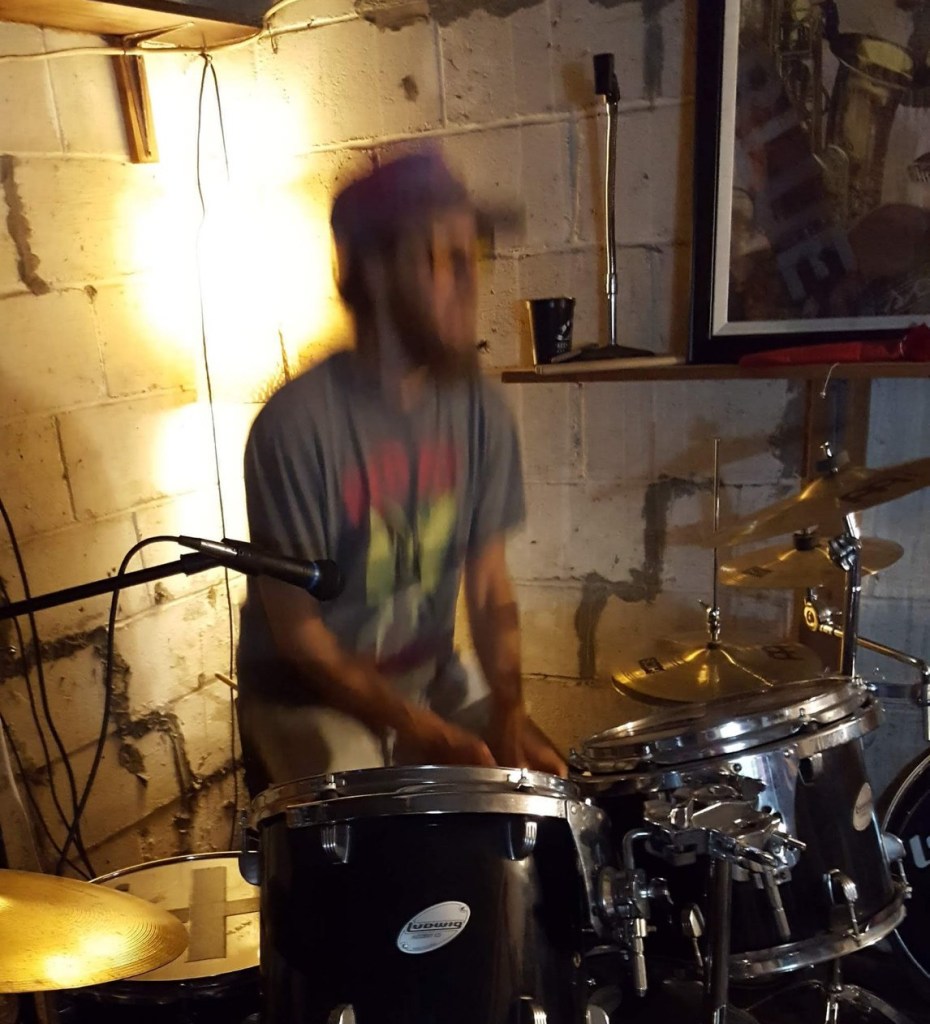 Adam is the drummer. Some may know him as L-would, aka Tanaka or Lance Lurrrthur, with an emphasis on the ‘urrr’ in Lurrrthur. He hails from Athens, Ohio where he honed his drumming skills on hollowed out pieces of tree and stretched coonskins. If you happen to cross him after midnight it’s best to just keep on walking. He’s an awesome drummer and person, and he keeps the jam moving.